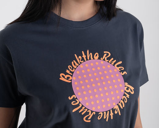 Break the rules στάμπα ροζ με πορτοκαλί χρώμα.