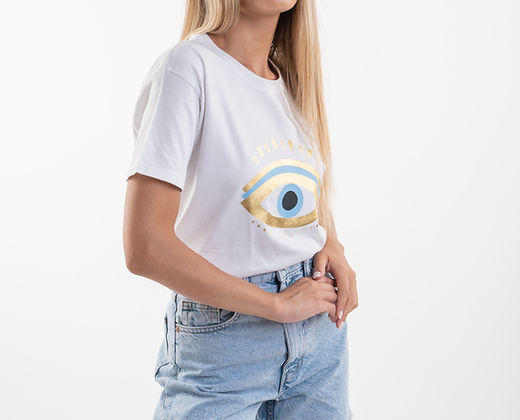 T-shirt βαμβακερό, κοντομάνικο με soft gold mirror stamp #carieye