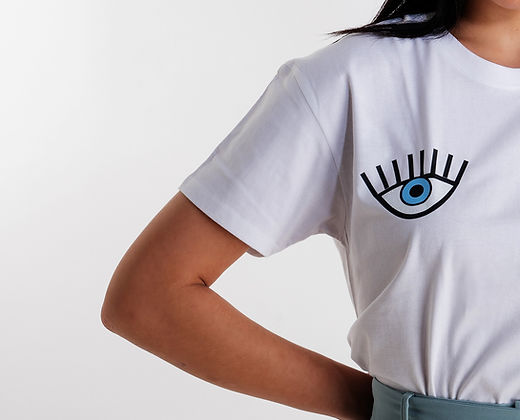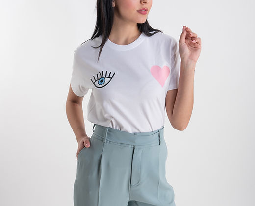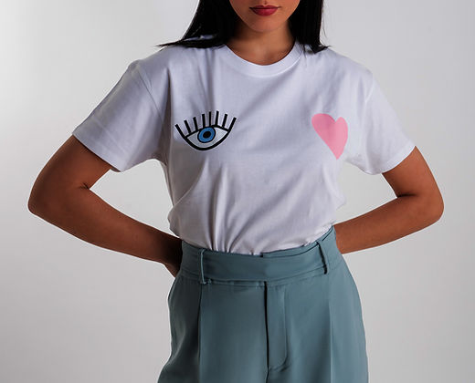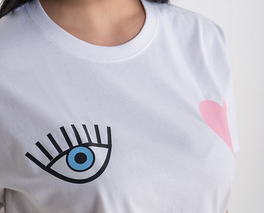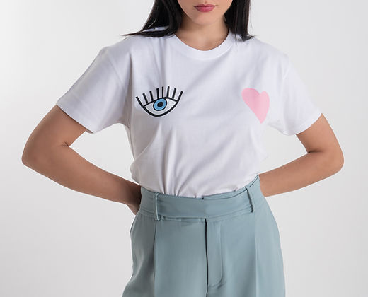 T-shirt με στρογγυλή λαιμόκοψη, μάτι με λευκό glitter