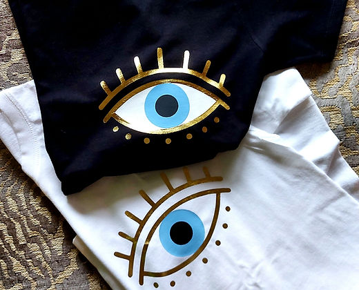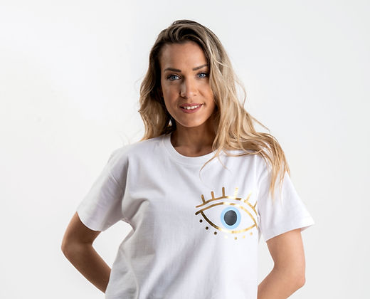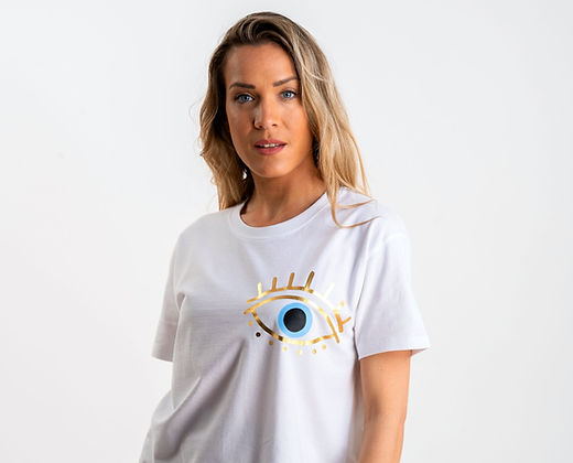 T-Shirt βαμβακερή μπλούζα κοντομανικη με στάμπα μάτι soft gold mirror. #hope