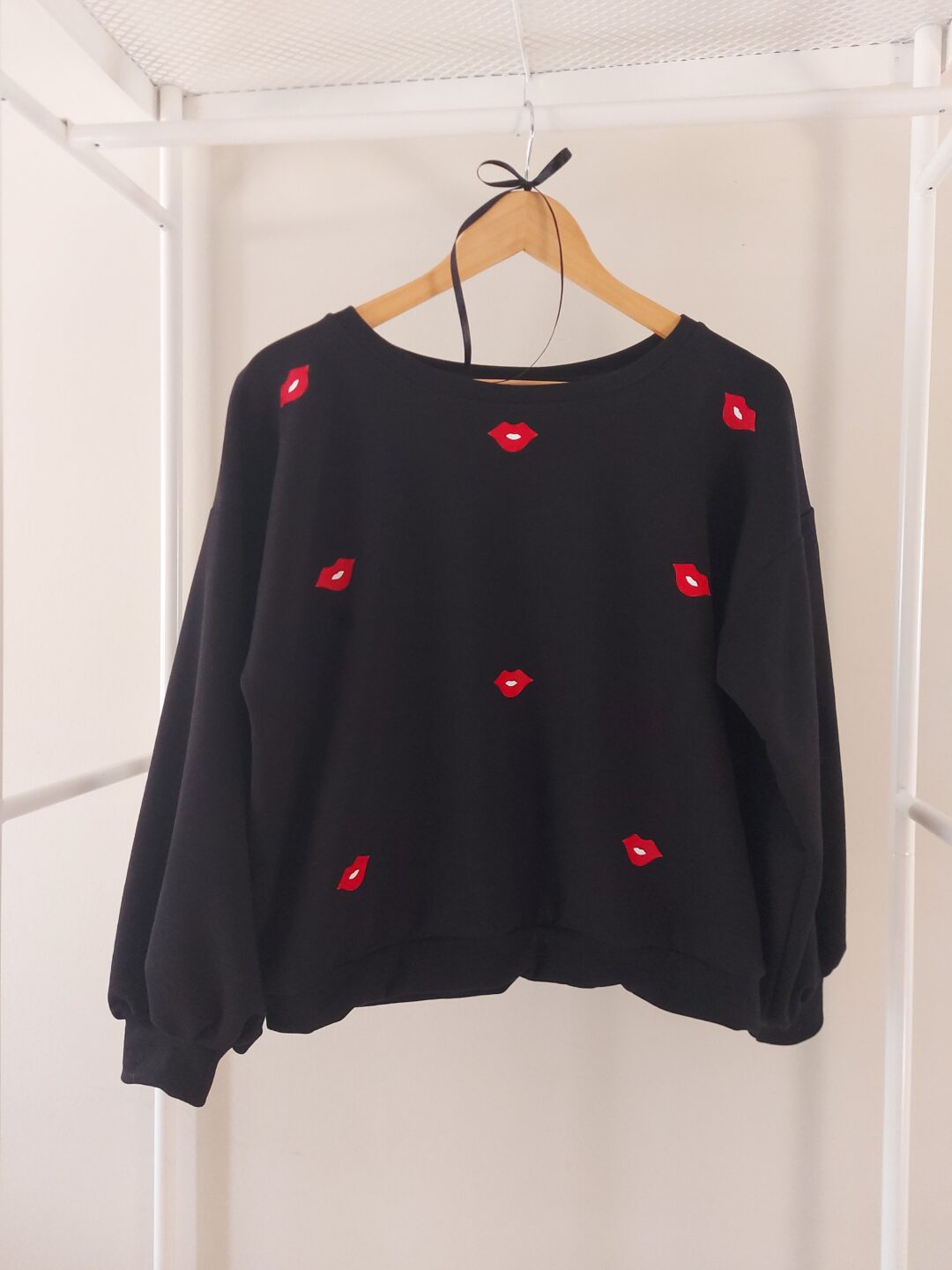 Μαύρο φούτερ -κόκκινα χειλάκια