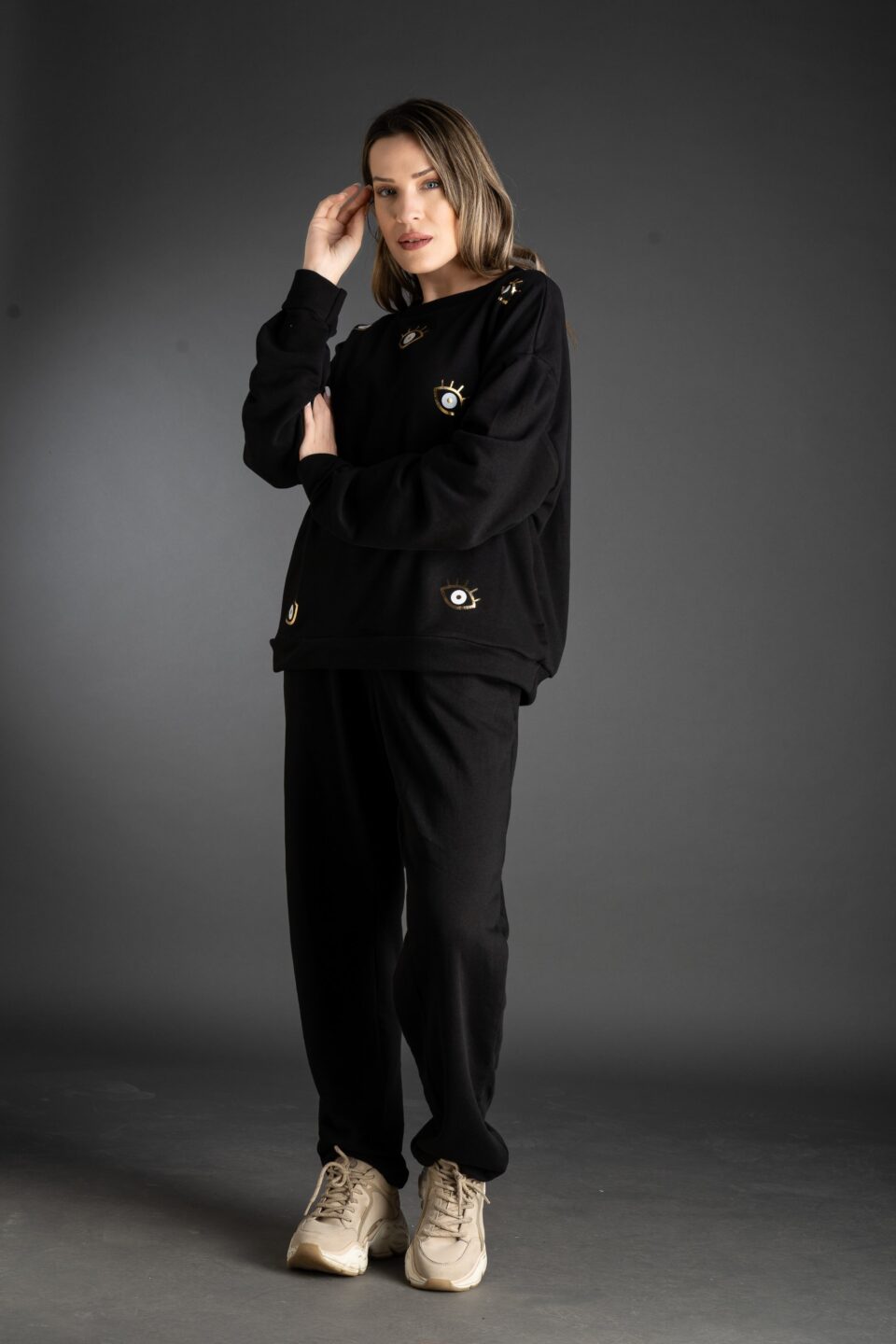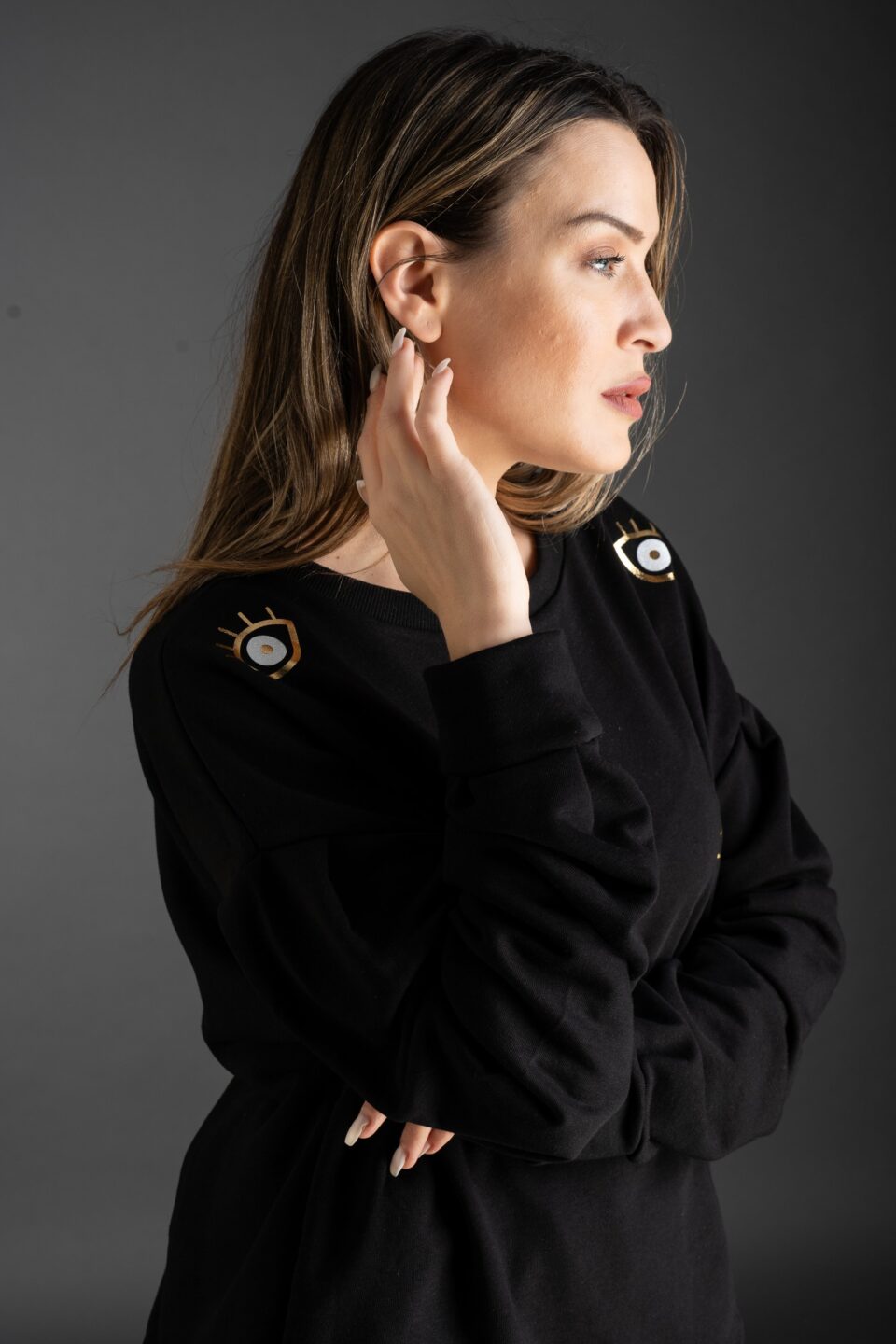 Λεπτομέρεια χρυσά ματάκια με εσωτερικό glitter.