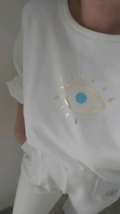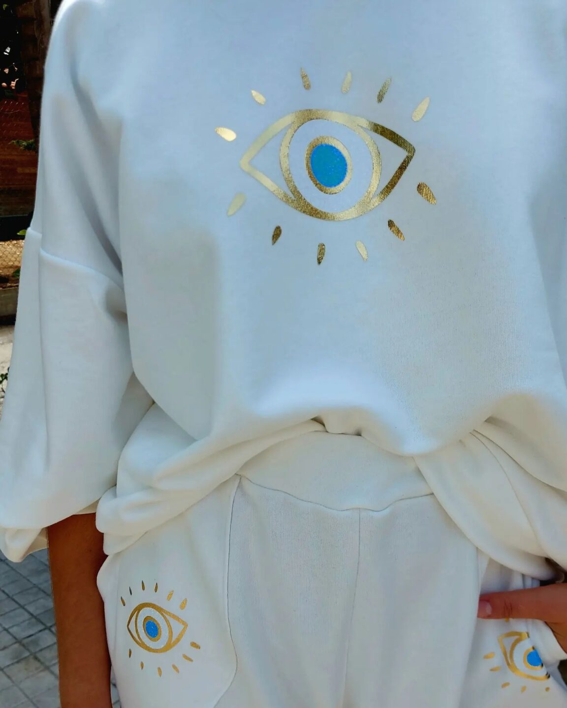 Φούτερ oversized με στρογγυλή λαιμόκοψη, μακρύ μανίκι και λεπτομέρεια μάτι χρυσό και gliiter.