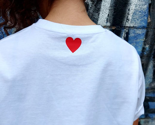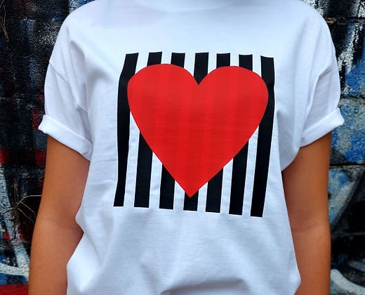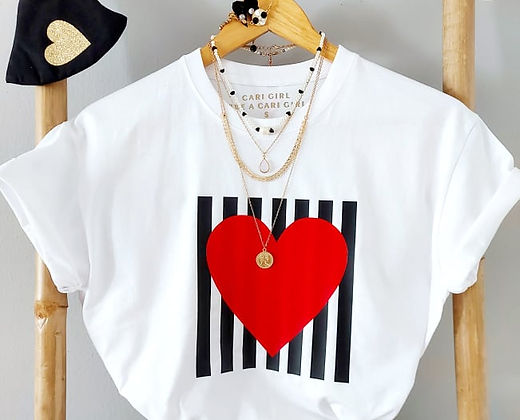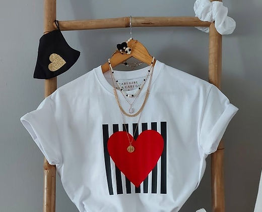 Λεπτομέρεια στάμπα μαύρες ρίγες και κόκκινη καρδιά. Κόκκινη καρδιά στην πίσω όψη.