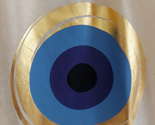 Shopping bag με στάμπα χρυσό μάτι και στις δύο όψεις σε φυσικό χρώμα.